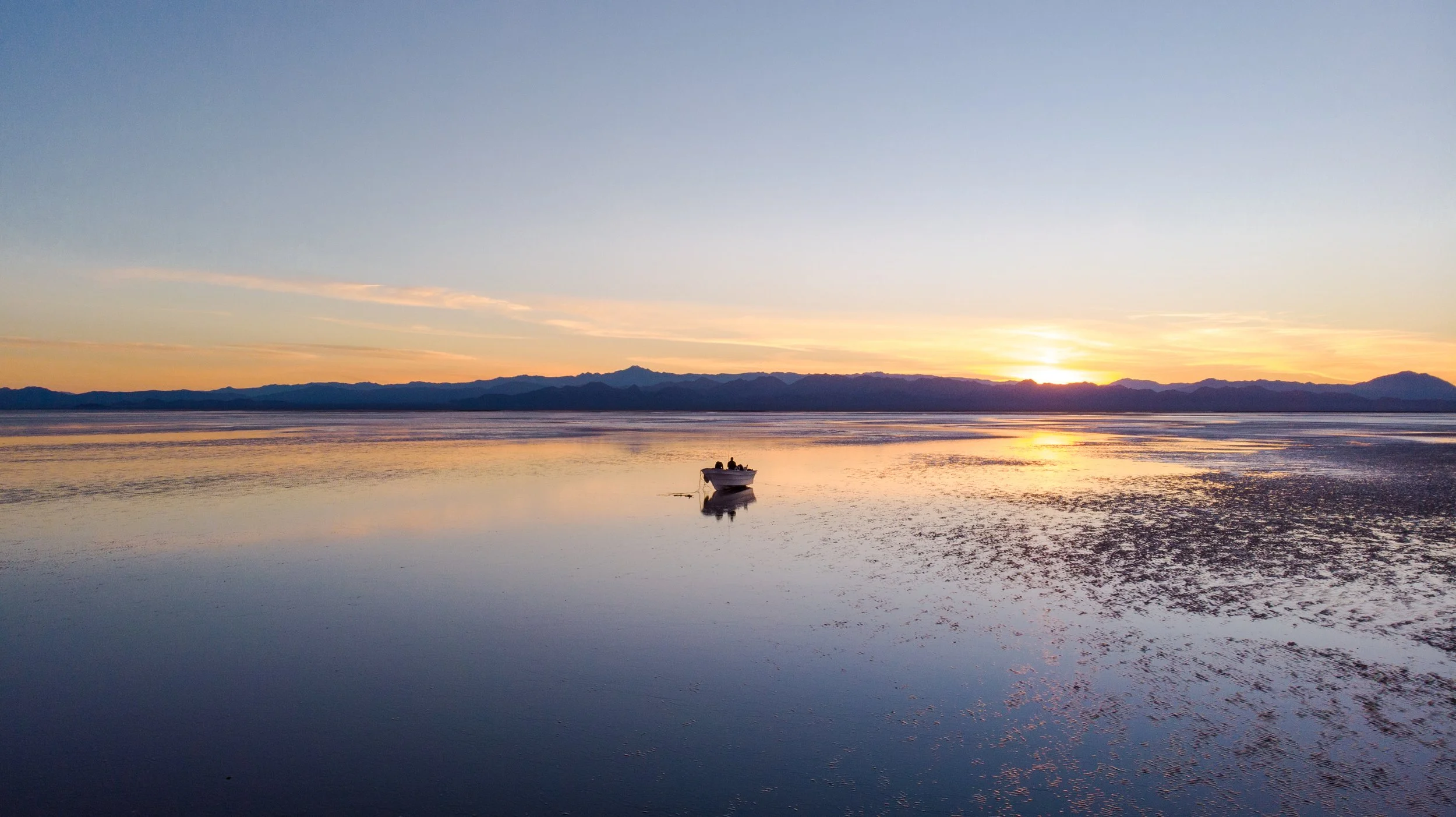 Israel había anclado la panga lejos de nosotros, donde el agua aún le llegaba al cuello. Al mirar atrás vi que estaba ladeada, dejamos los costales y corrimos para empujarla, pero la arena la había succionado. Nos quedamos varados. Estábamos muy lejos de tierra firme como para caminar, ningún vehículo terrestre podía entrar y, como no estábamos en peligro de muerte, pedir apoyo aéreo no era viable. Decidimos esperar: recolectar almejas y tomar fotografías.